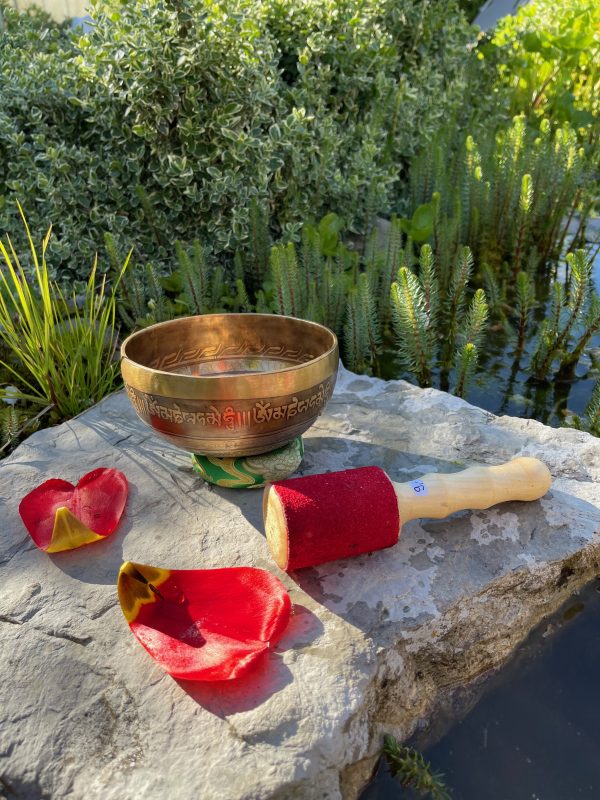 Diese wunderschöne Klangschale aus Messing ist geschmückt mit hochwertigen Verzierungen.